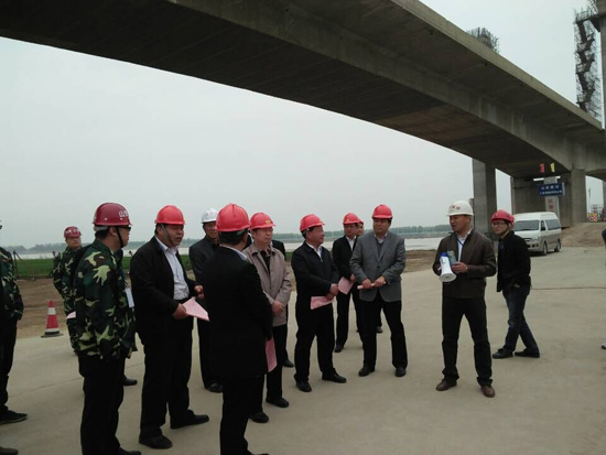 4月11日,省廳副廳長范正金、省公路局局長李洪修到東明大橋改造工程施工現(xiàn)場調(diào)研。調(diào)研組一行實(shí)地察看了G106京廣線東明黃河公路大橋改造工程施工現(xiàn)場。公司派駐項(xiàng)目總監(jiān)周軍在現(xiàn)場向各位領(lǐng)導(dǎo)詳細(xì)介紹了工程進(jìn)展情況,得到各級領(lǐng)導(dǎo)的認(rèn)可?!?